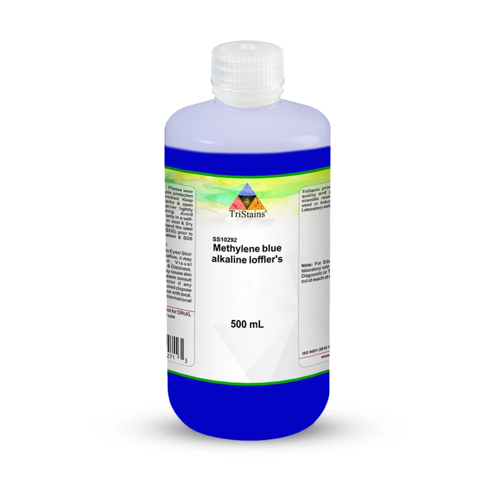 Methylene Blue Alkaline Loffler’s Solution is a staining solution that includes methylene blue dye in an alkaline environment. It is also referred to as Methylene Blue solution, Ehrlich’s reagent III, Loeffler’s Methylene Blue. The chemical formula of this solution is C16H18ClN3S. The solution is commonly made by dissolving methylene blue in a potassium hydroxide (KOH) or sodium hydroxide (NaOH) solution. Methylene Blue Loeffler reagent is utilized for staining acidoresistant bacteria based on Ziehl-Neelsen, utilizing the dye’s ability to stain nearly all the bacterial cell components in a slightly alkaline medium (Methylene Blue Loeffler reagent has a pH value of 8-8.5). Methylene Blue Alkaline Loffler’s Solution is a laboratory reagent employed in microbiology and histology.