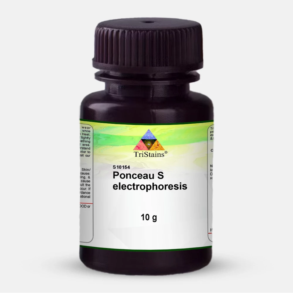 - Ponceau S Electrophoresis is widely used to stain proteins separated by gel electrophoresis techniques, such as SDS-PAGE and Western blotting.