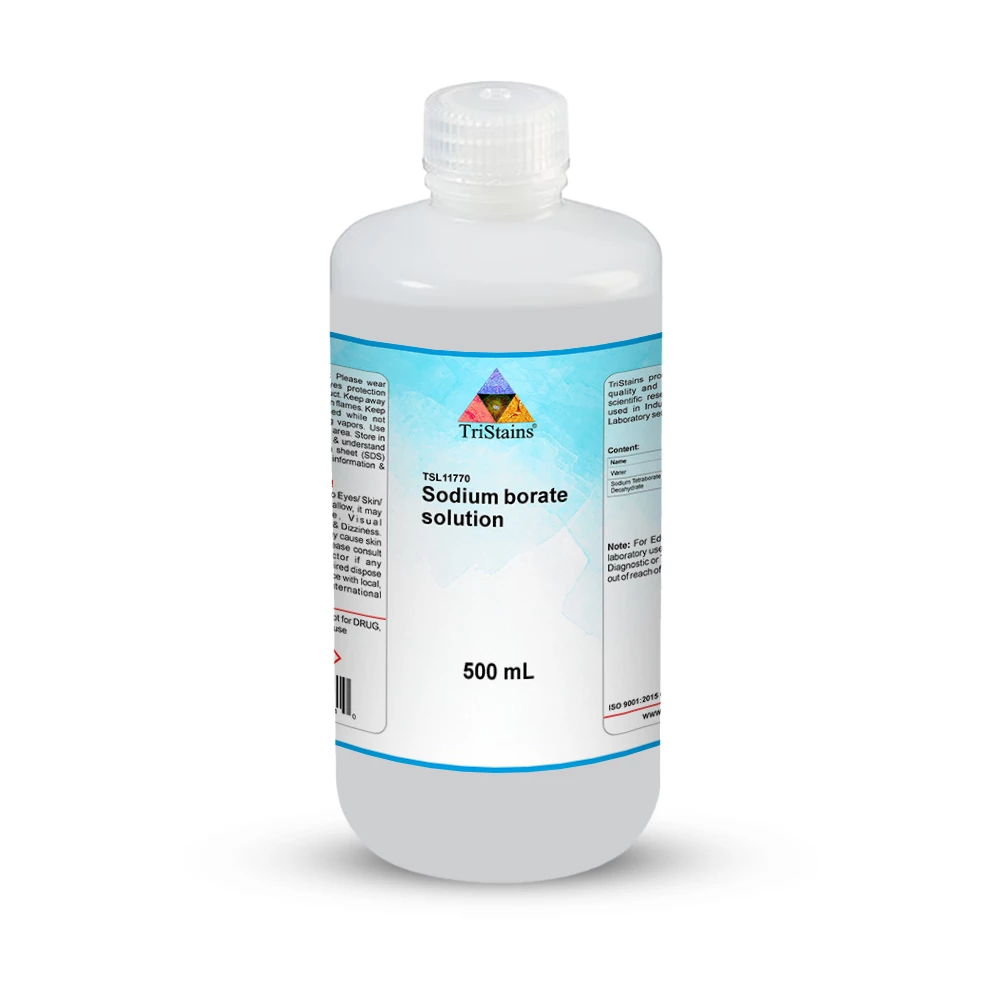 Sodium borate solution is a water-based solution containing sodium borate, a naturally occurring mineral referred to as borax. This solution is usually created by dissolving borax powder in water, yielding a clear or slightly turbid liquid, which varies based on the concentration. The pH of the solution can differ according to its dilution, but it is typically mildly alkaline. Commonly known as borax solution or borate solution, sodium borate solution is a multifunctional chemical compound with numerous applications, including its use in staining.